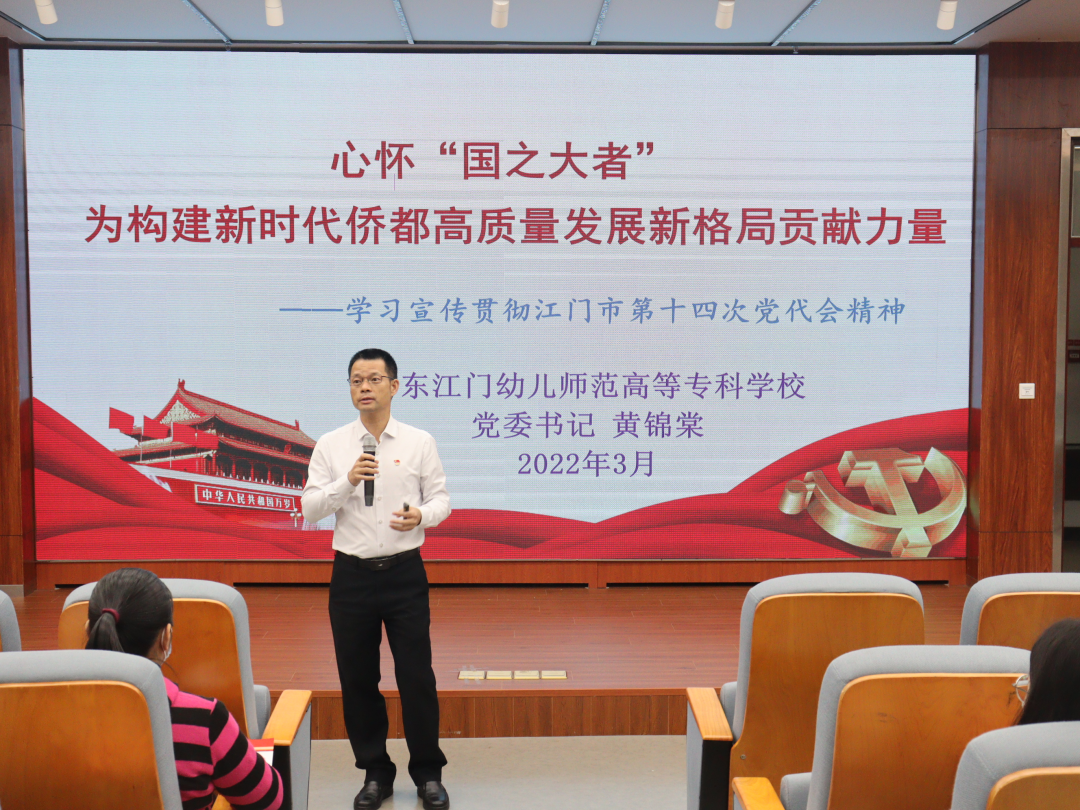 为全力推动江门市第十四次党代会精神的贯彻落实,3月29日晚上,我校党委书记黄锦棠为第二期入党积极分子作专题讲课,全面学习领会江门市第十四次党代会精神。